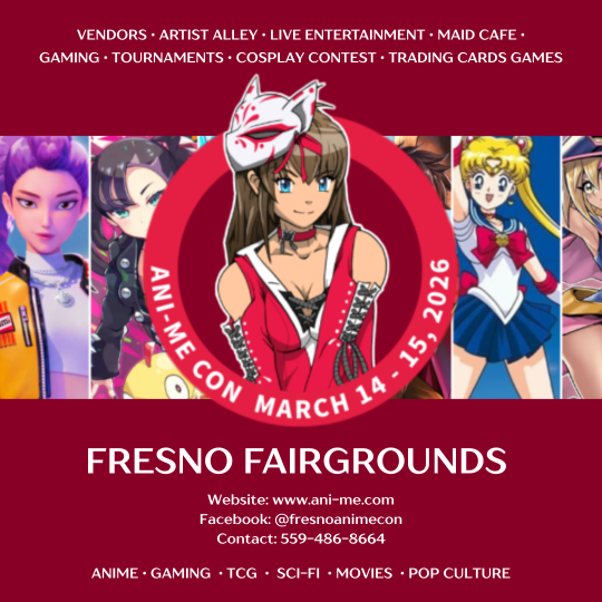 Don’t miss Ani-Me Con 14.0, the biggest annual anime, gaming and sci-fi convention in the Central Valley happening Saturday, March 14 and Sunday, March 15 at the Fresno Fairgrounds! Times are 9:30 a.m. – 7 p.m. on Saturday and 9:30 a.m. – 5 p.m. on Sunday. Check out hundreds of vendors, special guests and cosplayers, artist, exhibitors, live entertainment plus so much more!