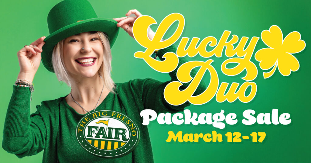 Feeling lucky? Big Fair Fan Club members get an exclusive chance to save big with our Lucky Duo Package Sale, available only online! The sale kicks off Thursday, March 12 at 10 a.m. and ends Tuesday, March 17 at 11:59 p.m. For a limited time, members can grab the: